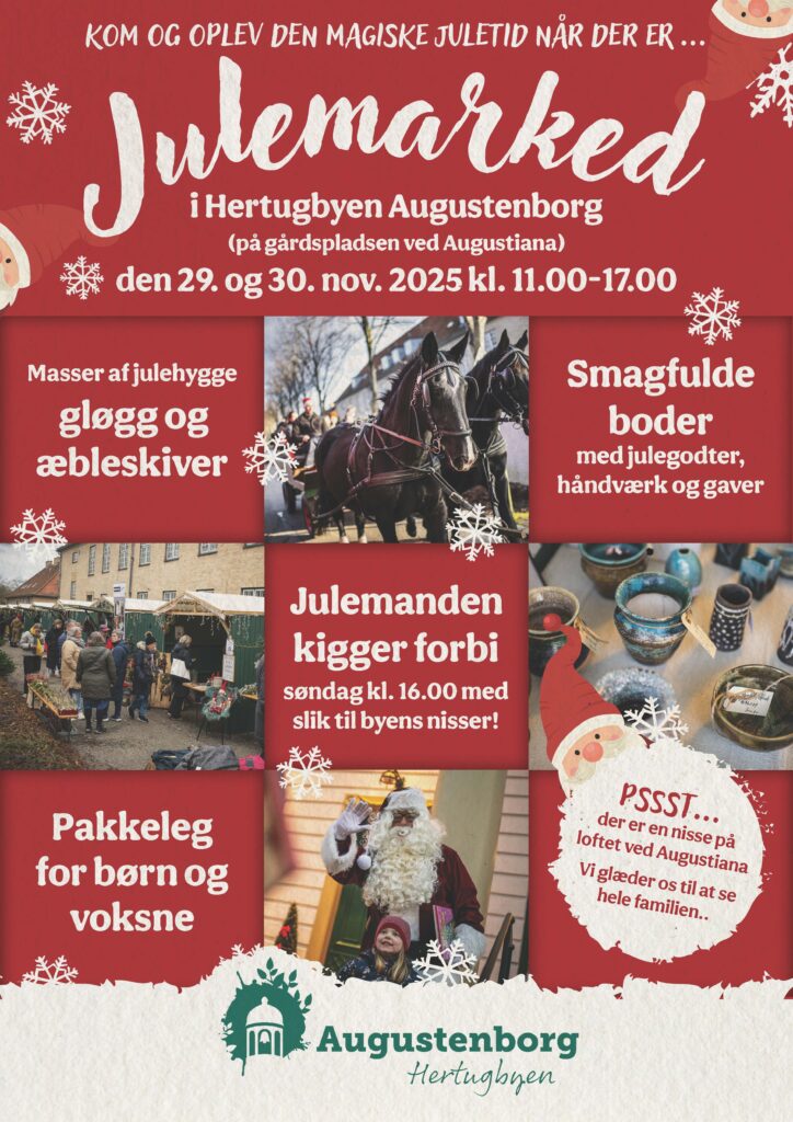 Den 29. og 30. november byder vi julen velkommen med et hyggeligt julemarked på gårdspladsen foran Augustiana.